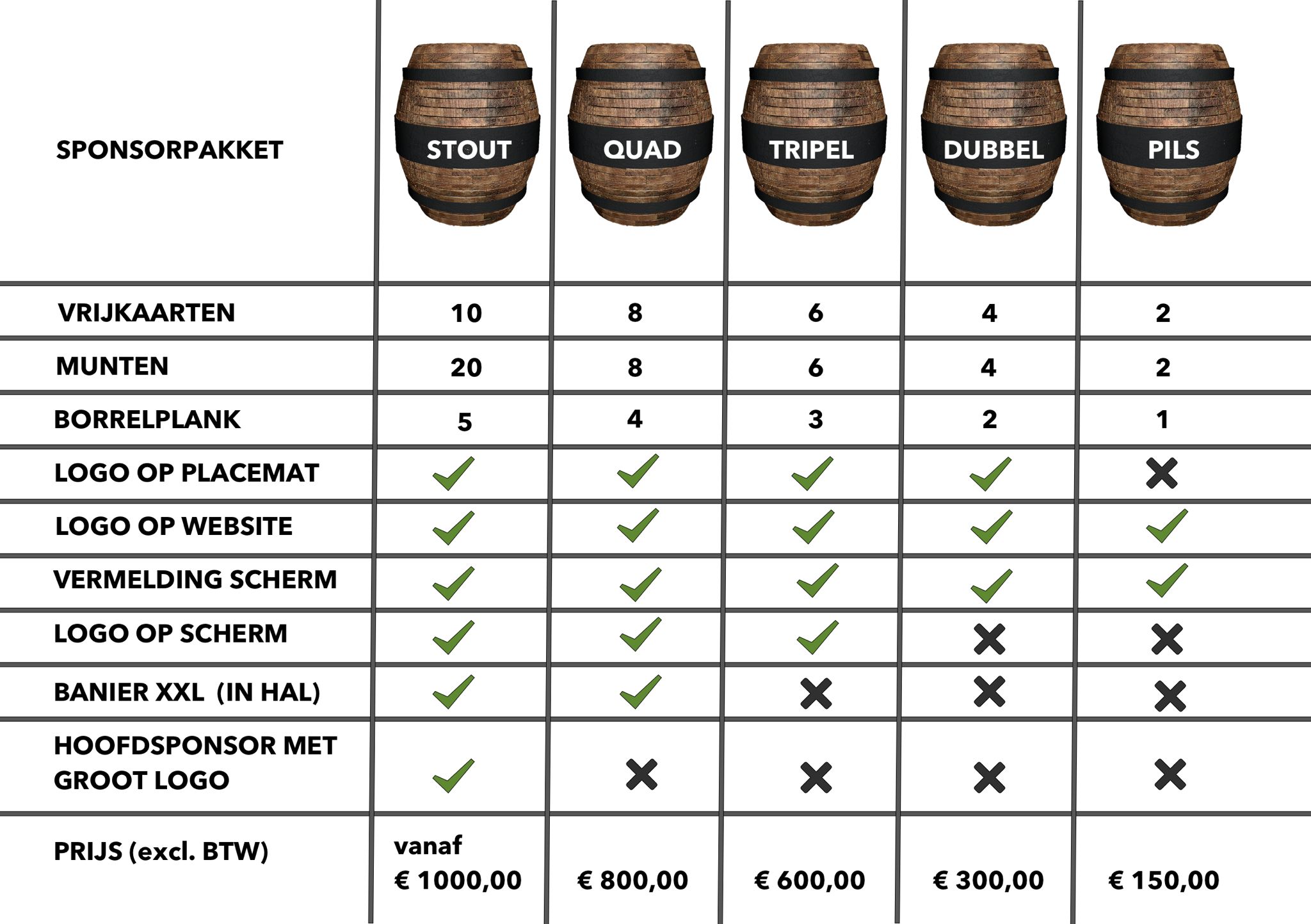 Ben jij klaar om jouw merk naar een hoger niveau te tillen? Sluit je aan bij Biertest Drachten als sponsor en bereik een breed en divers publiek van bierliefhebbers en vakexperts. Onze sponsorpakketten bieden geweldige mogelijkheden om jouw merk te promoten en zichtbaarheid te vergroten. Kies het pakket dat het beste bij jouw bedrijf past en profiteer van de vele voordelen!